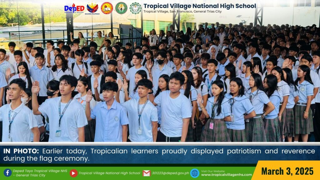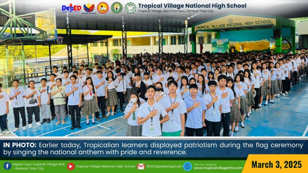 Earlier today, Tropicalian learners displayed patriotism during the flag ceremony by singing the national anthem with pride and reverence.