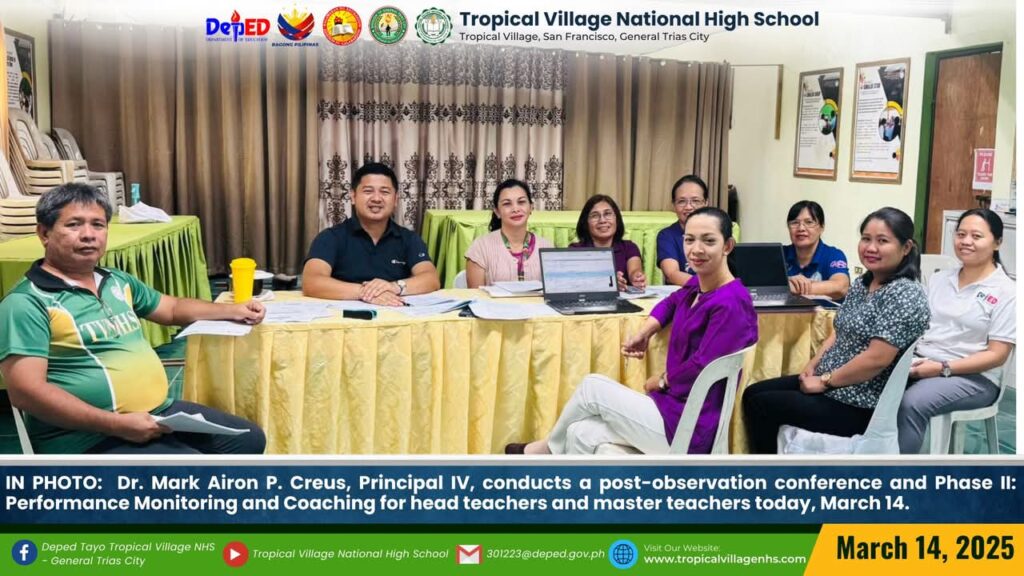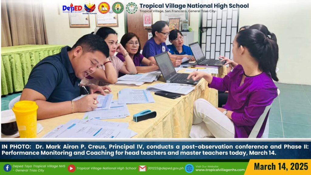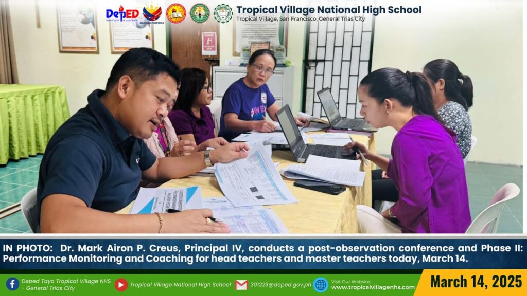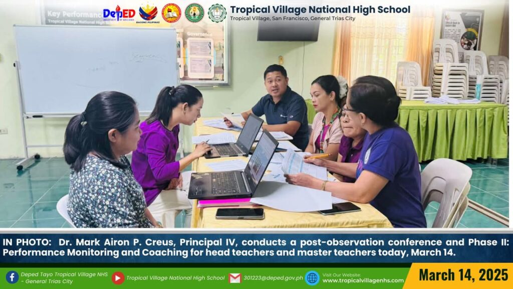 Dr. Mark Airon P. Creus, Principal IV, conducts a post-observation conference and Phase II: Performance Monitoring and Coaching for head teachers and master teachers today, March 14.