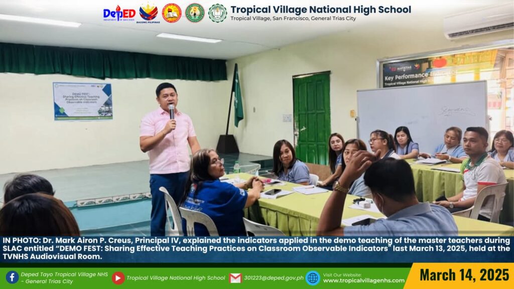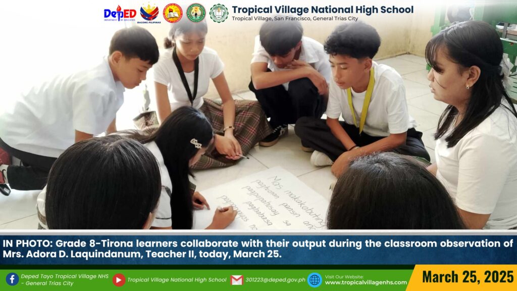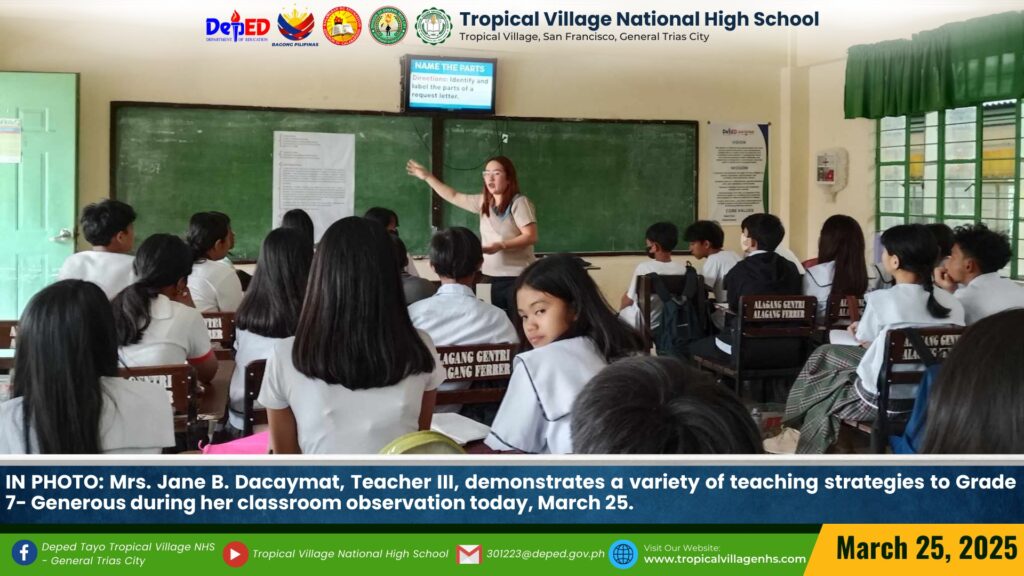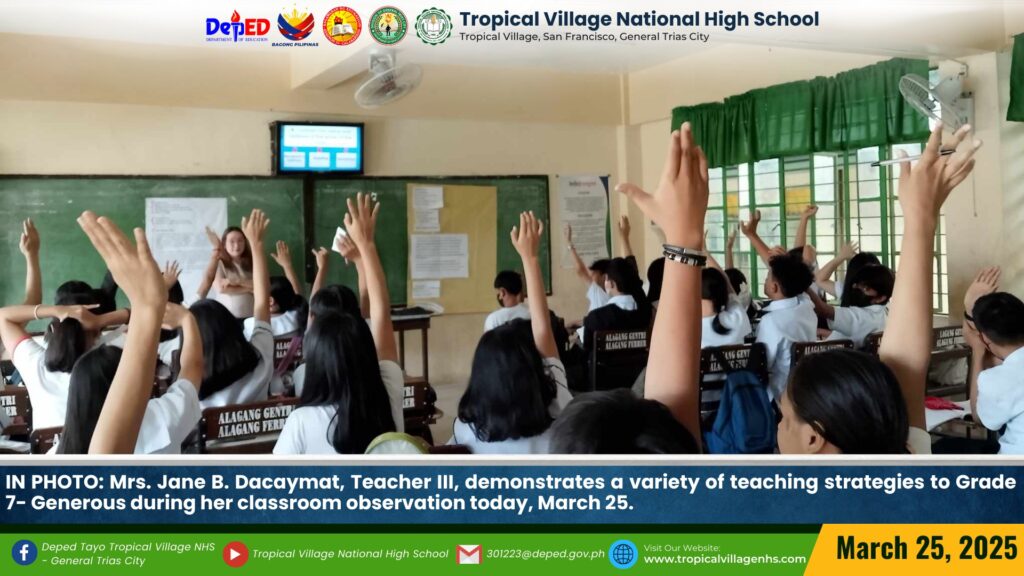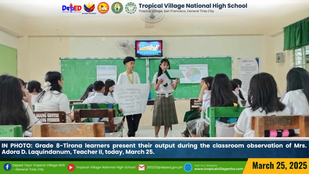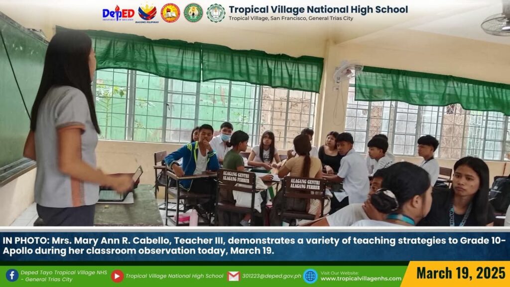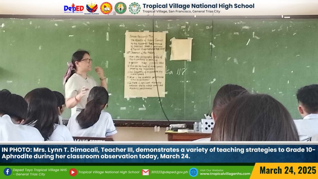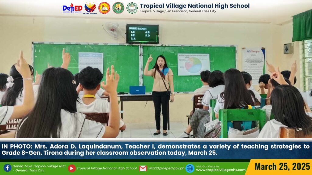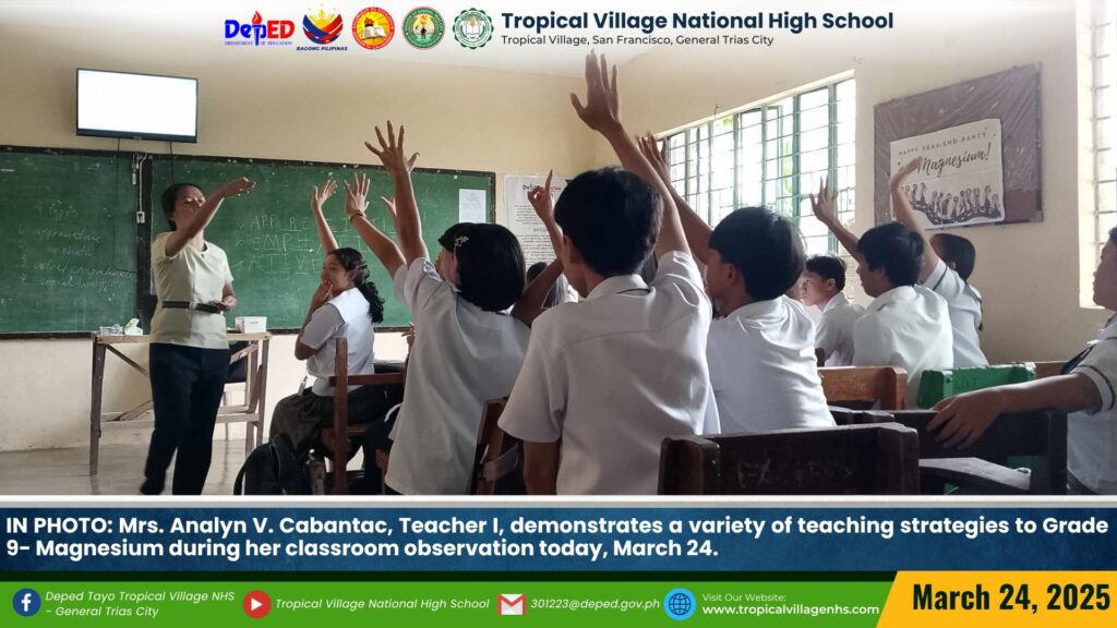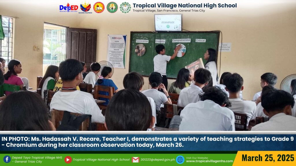 TVNHS teachers showcased a variety of teaching strategies to Tropicalian learners during their classroom observation today, March 27.