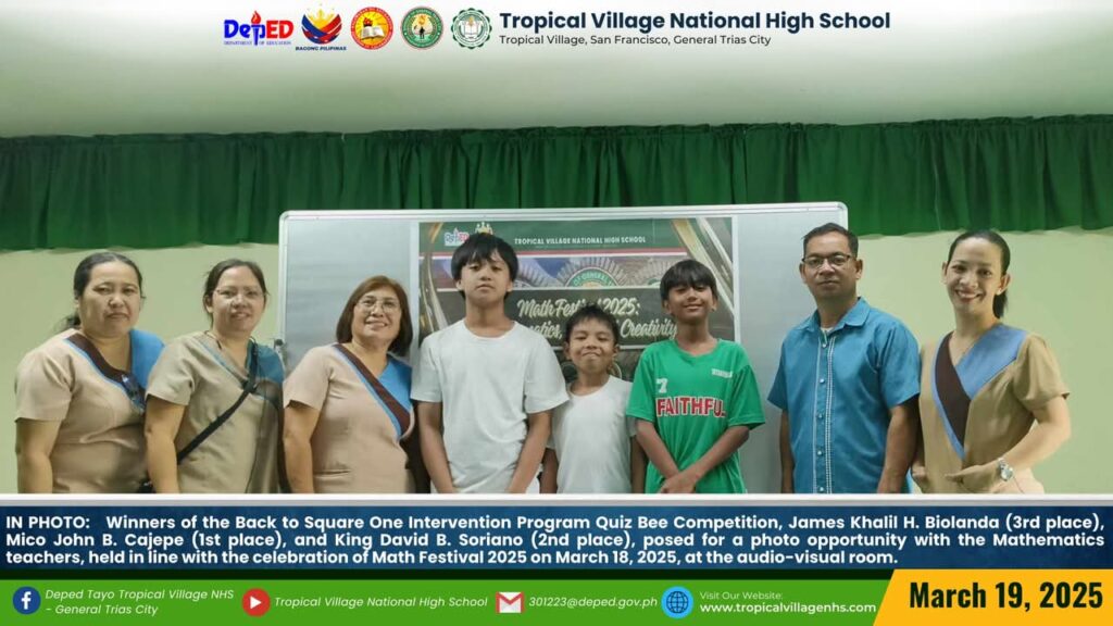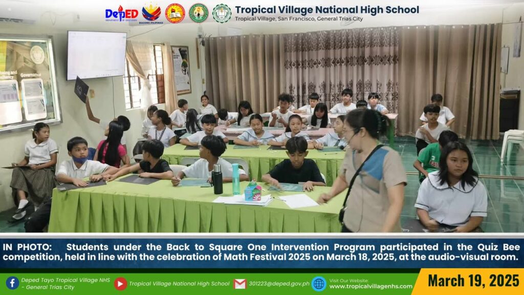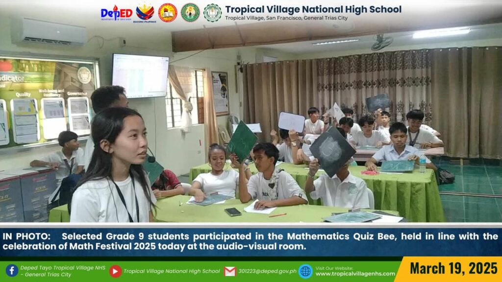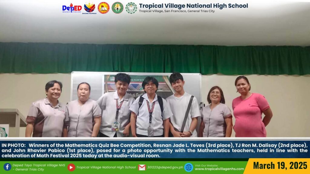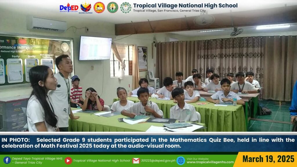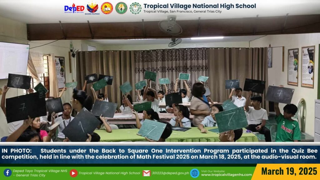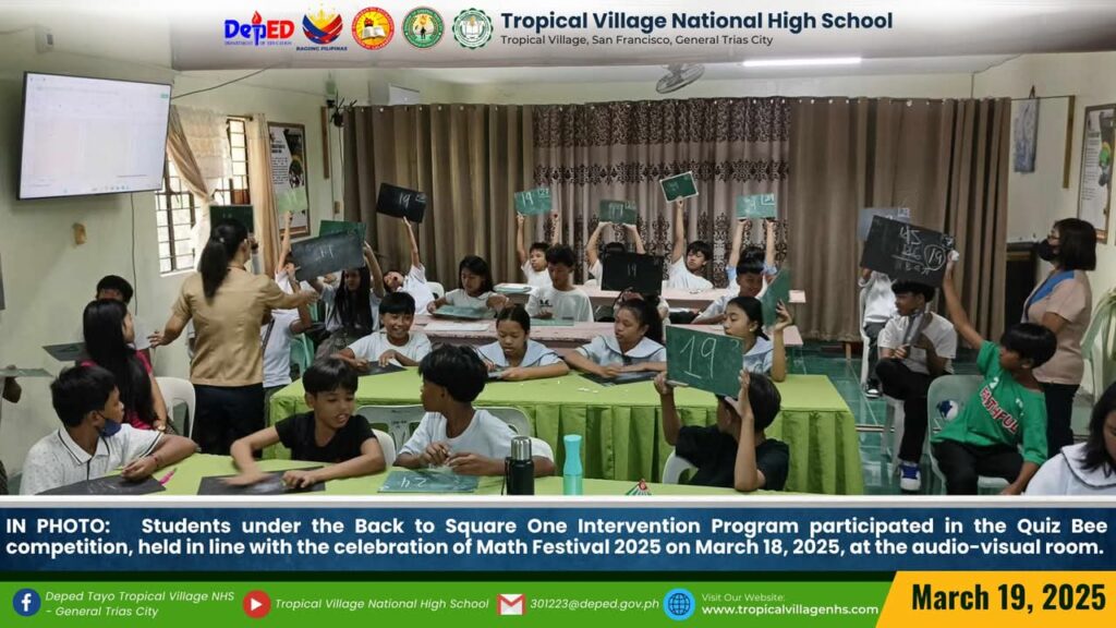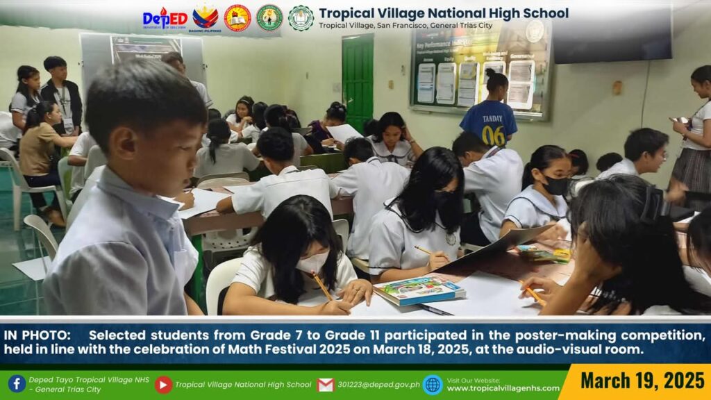 The Mathematics Department, under the leadership of Lea P. Amon, Head Teacher I, together with all the mathematics teachers, organized a series of activities to celebrate Math Festival 2025. Among the activities were Damath, Sudoku, Math Quiz Bee, Poster-Making Contest, Math Warriors, and Mathok Bola. Students from grades 7 to 11 participated in the event, which started on March 17 and will continue onwards.