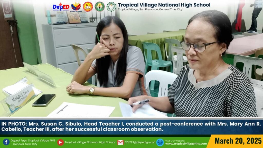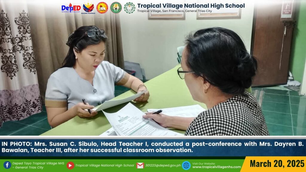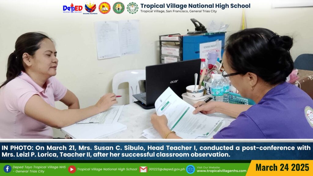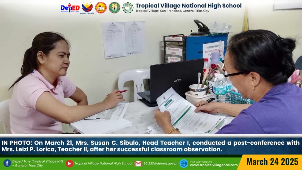 On March 21, Mrs. Susan C. Sibulo, Head Teacher I, conducted a post-conference with Mrs. Leizl P. Lorica, Teacher II, after her successful classroom observation.