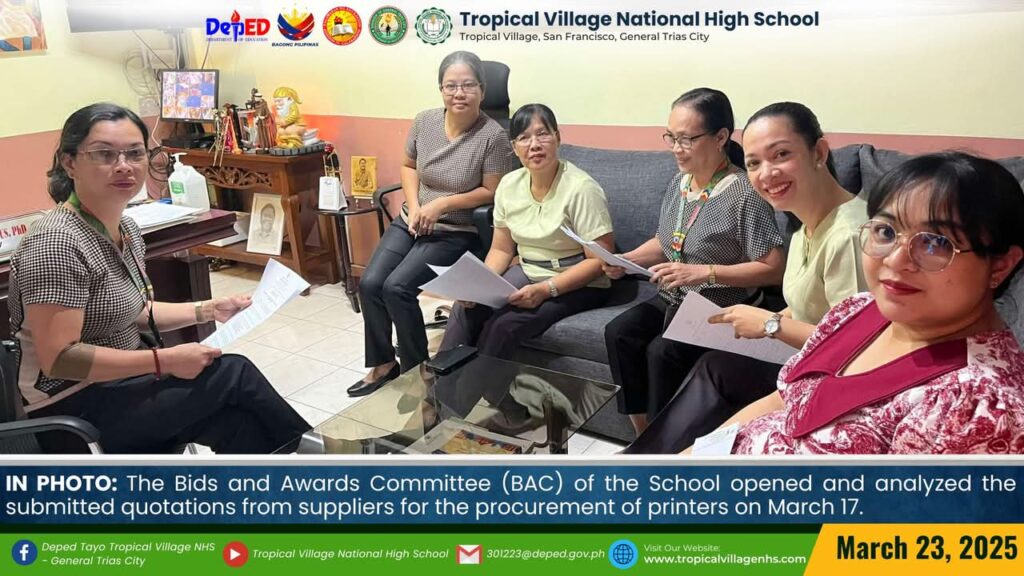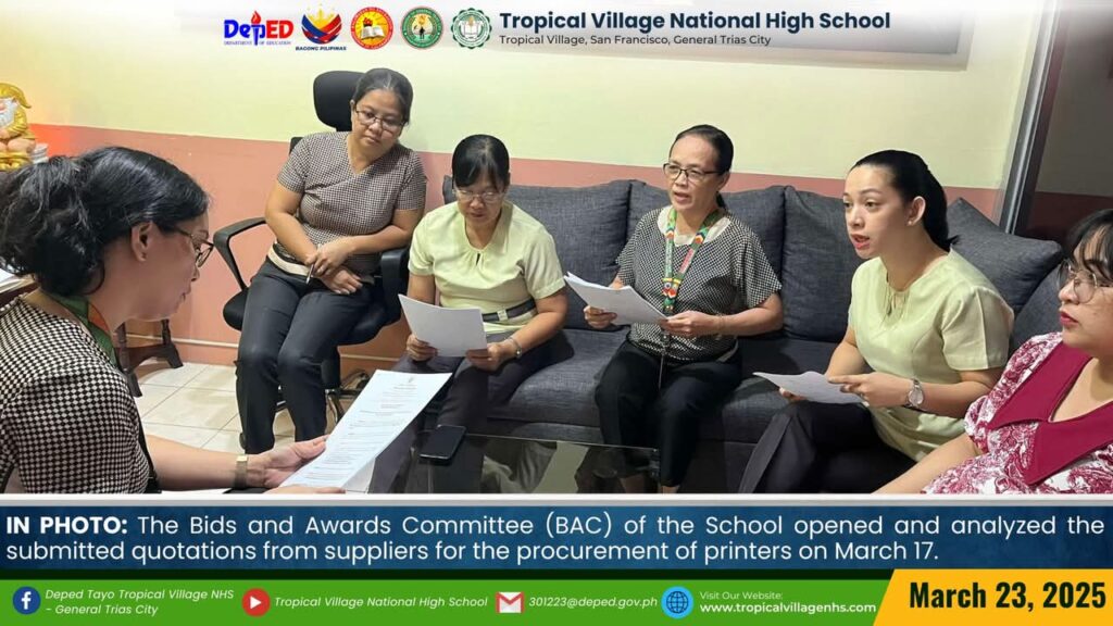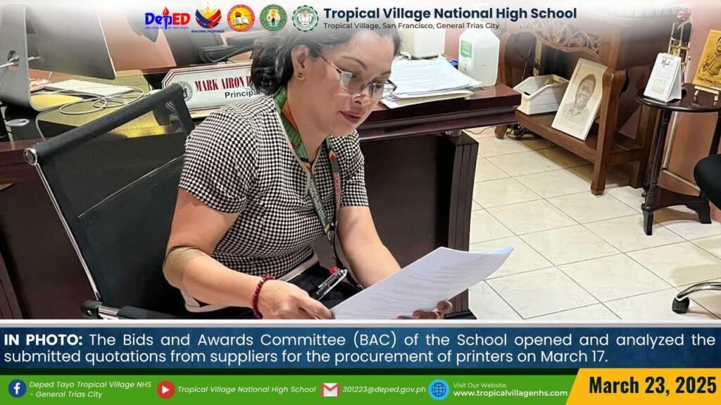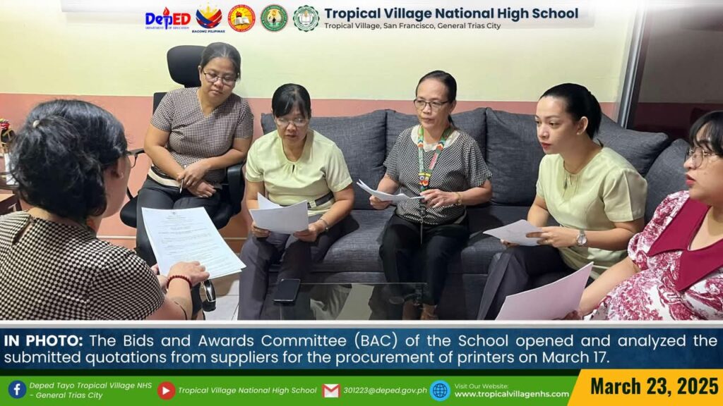 The Bids and Awards Committee (BAC) of the School opened and analyzed the submitted quotations from suppliers for the procurement of printers on March 17.