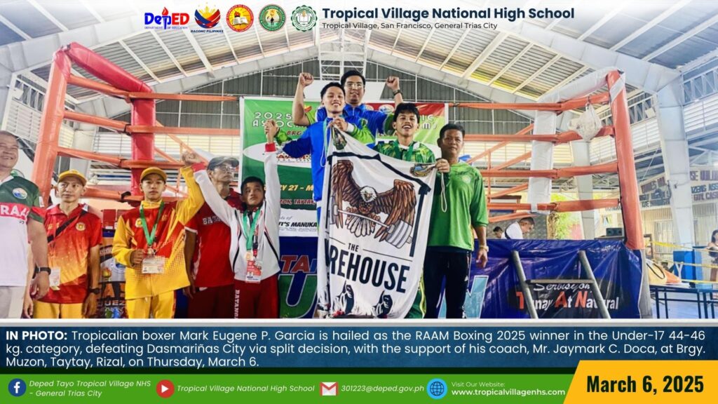 Tropicalian boxer Mark Eugene P. Garcia is hailed as the RAAM Boxing 2025 winner in the Under-17, 44-46 kg. category, defeating Dasmariñas City via split decision, at Brgy. Muzon, Taytay, Rizal, on Thursday, March 6.