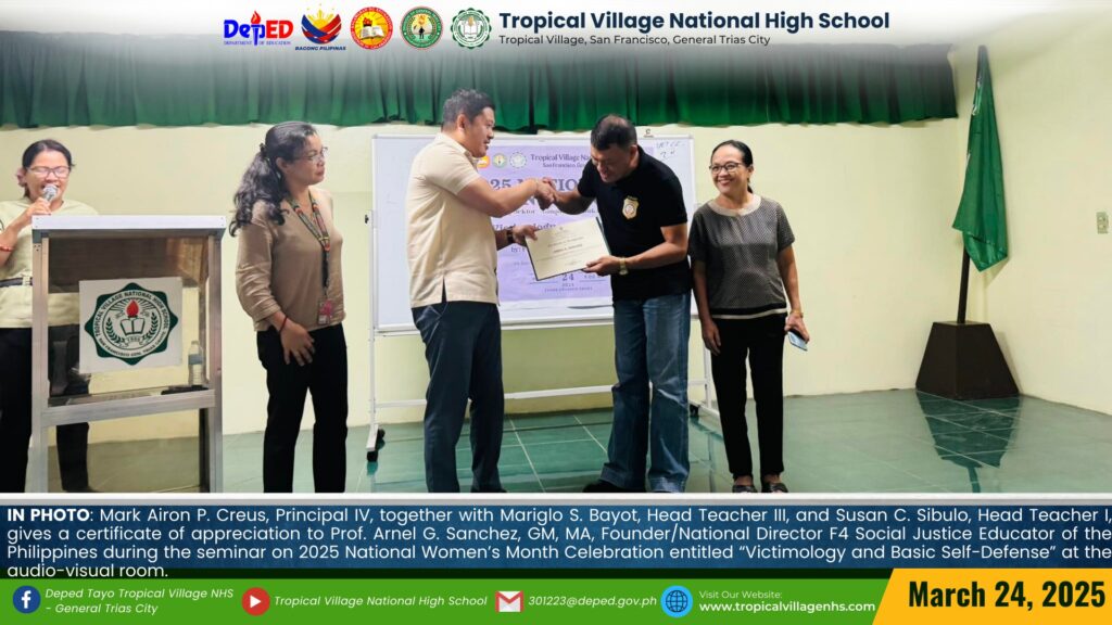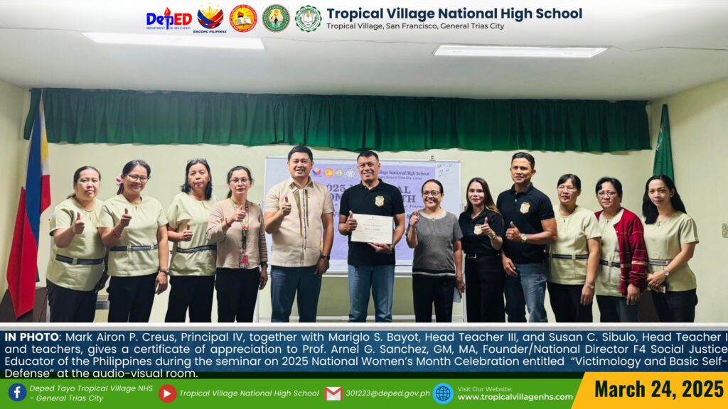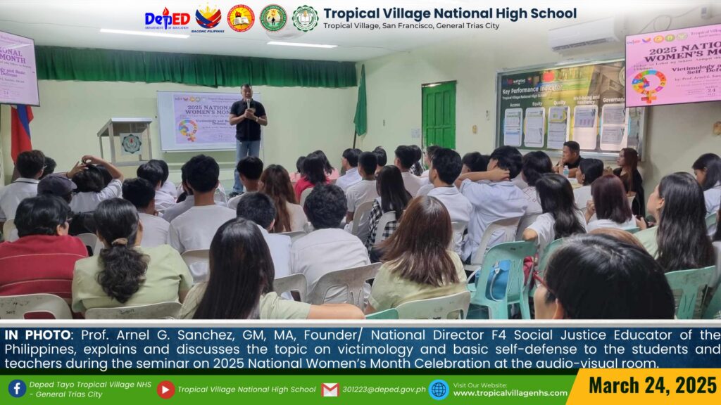 TVNHS conducts a seminar on 2025 National Women’s Month Celebration entitled “Victimology and Basic Self-Defense” on March 24, 2025 at the audio-visual room.
