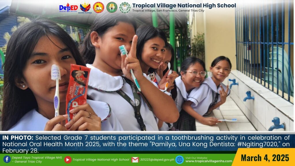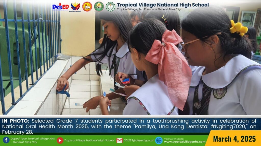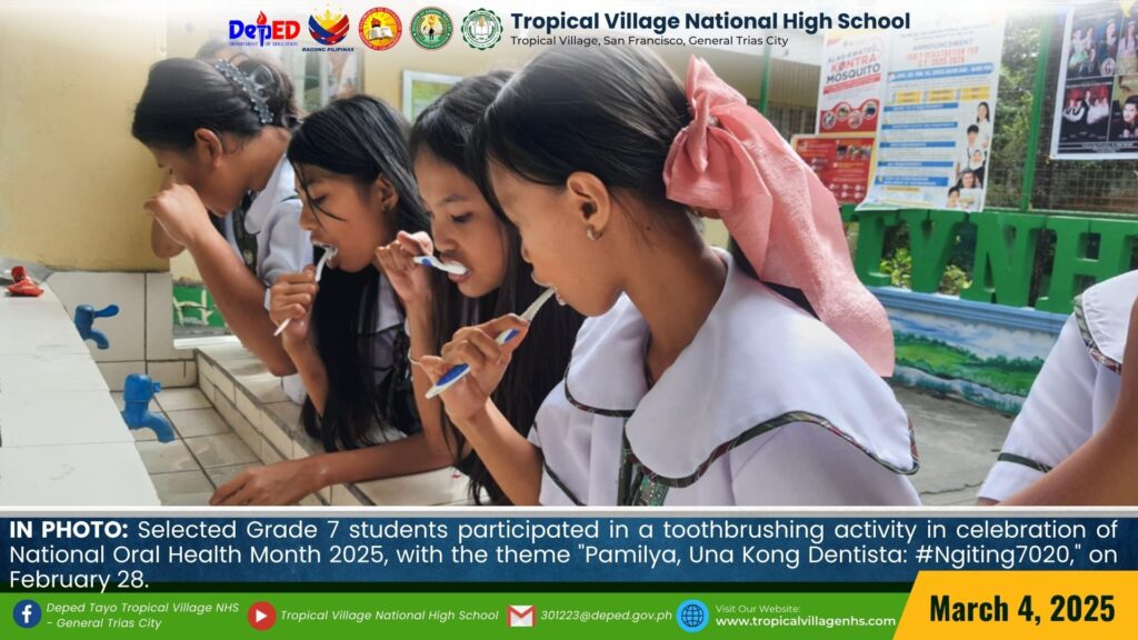 Selected Grade 7 students participated in a toothbrushing activity in celebration of National Oral Health Month 2025, with the theme “Pamilya, Una Kong Dentista: #Ngiting7020,” on February 28.