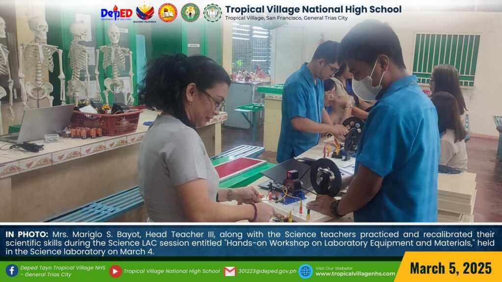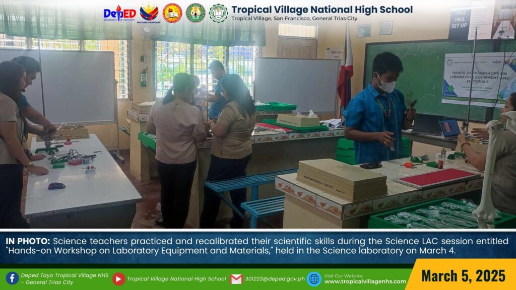 Science teachers honed and recalibrated their science skills during the Science LAC session entitled “Hands-on Workshop on Laboratory Equipment and Materials,” held in the Science laboratory on March 4.