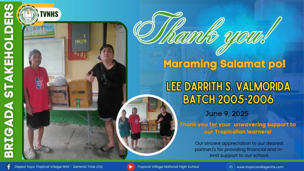 Our sincerest appreciation to Lee Darrith S. Valmorida of Batch 2005-2006 for donating school supplies.