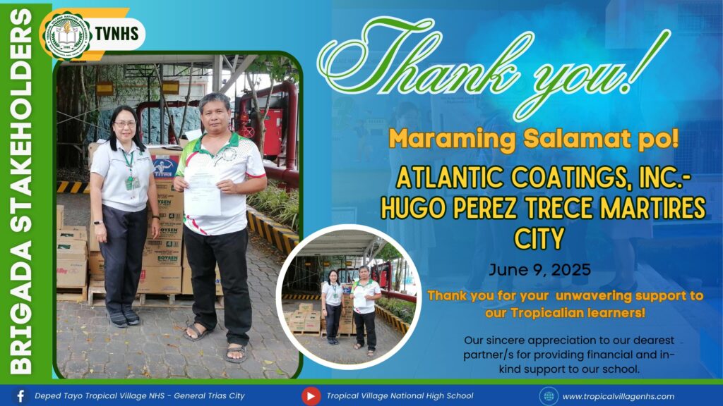 Our heartfelt gratitude to the Atlantic Coatings, Inc. for their generous donation of paint supplies during the Brigada Eskwela 2025.