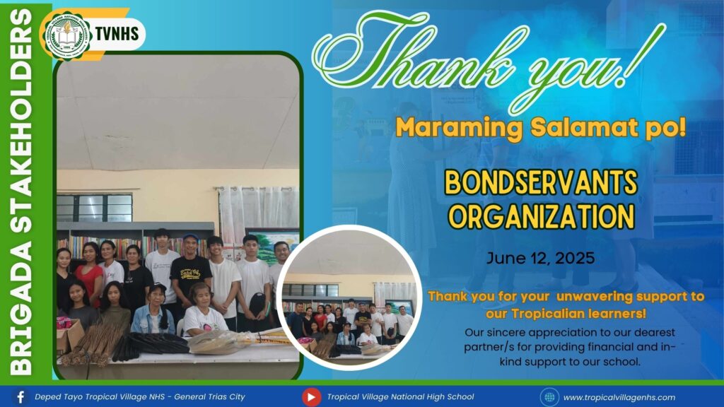 Our heartfelt gratitude to Bondservants Organization for their generous donation of cleaning materials during the Brigada Eskwela 2025.