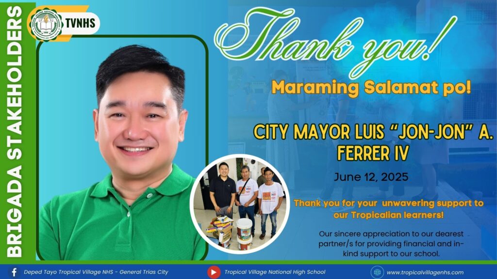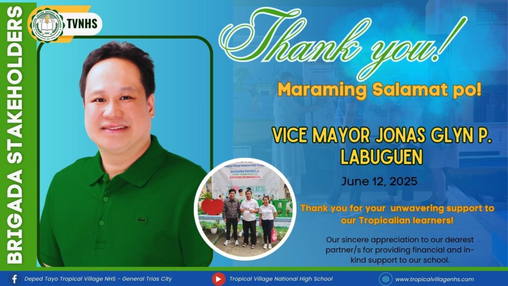 Our heartfelt gratitude to City Vice Mayor Jonas Glyn P. Labuguen for his generous cash donation in support of Brigada Eskwela 2025.